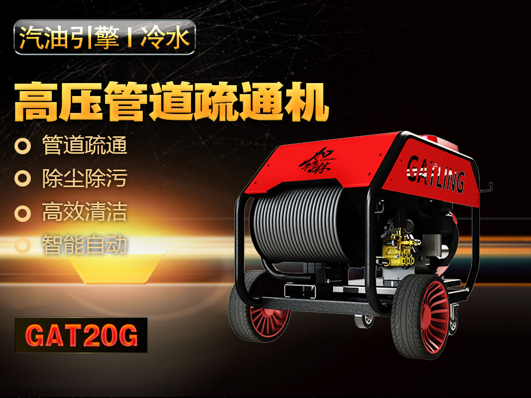 产品简介:GAT20G汽油引擎清洗机,管道疏通专用,适用于高强度、持续性强、顽固污渍的清洗作业。